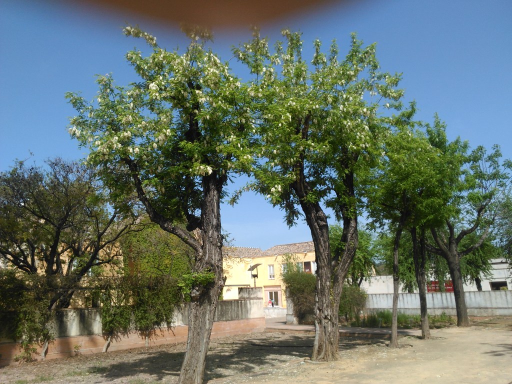 Robinia pseudoacacia.-Acacia blanca.-Arbol que se plantó mucho en Sevilla procedente de viveros de Obras Públicas, la parte exterior de la Plaza de España estaba rodeada de dos hileras de acacias que se fueron eliminando al quitarle luz a las oficinas que se instalaron, todavía quedan algunas. En el Barrio de León, ya muy vetustas, se sustituyeron por naranjos en el 1970.Las existentes en la Avda. de la Palmera son producto de reposiciones que con el tiempo se han ido efectuando, queda alguna de las originales plantadas en 1928.Otras antiguas restan en la Avda. de la Cruz Roja pueden ser de principios de siglo XX. En la calle Rábida permanecen algunas de las originales del año 1926 y sin duda , las más antiguas sin fecha frente al Monasterio y en el interior de la Cartuja de Santa María de las Cuevas. La Robinia pseudacacia var. unifolia en el barrio de Pino Montano.2012.