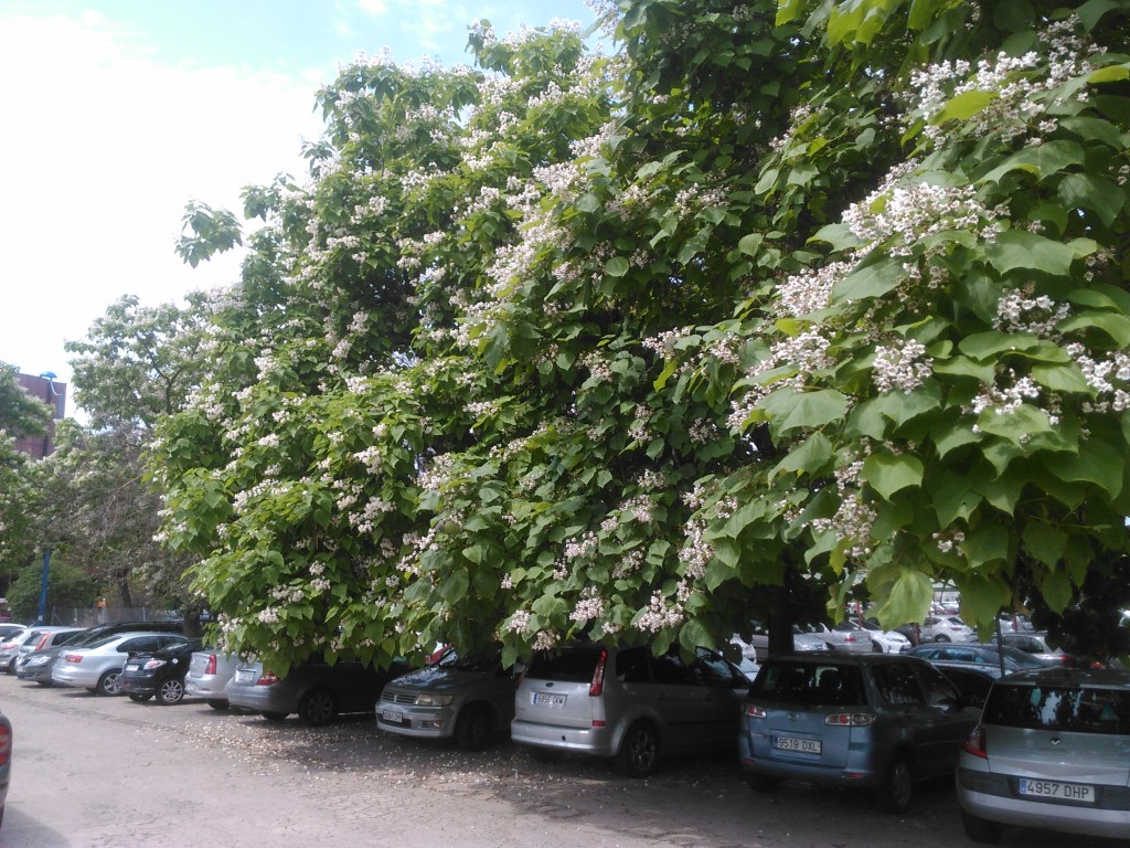 Catalpa bignonioides.-Catalpa. La que existe en el Parque de María Luisa es reciente del 2012,la antigua la abatió un vendaval. Quedan pocas en la Plaza de la Gavidia plantadas en 1950.En la Expo junto al World Trade Center en la calle Jerónimo Aguilar y otras en 1990 en los aparcamientos de la Expo 92
