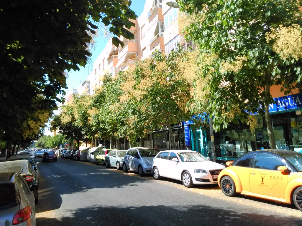 En la Ronda de Triana se han plantado y en calle Niculoso Pisano 1998-2000 y últimamente parece ser el árbol estrella y se plantan por doquier en calles donde existen marras. Styphnolobium japonicum var,pyramidalis en calle Amor de Dios 2017.