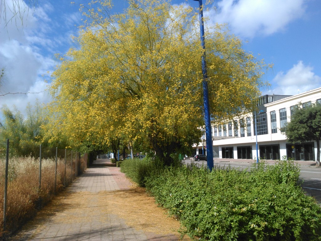 Parkinsonia aculeata.-Palo verde. Poco representada como árbol de calle, existe un viejo ejemplas en la Avda. de los Descubrimientos, otro en los jardines de las Delicias y como invasora en la expo y en el Polígono Sevilla-Este