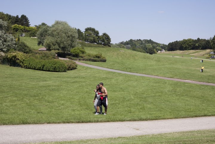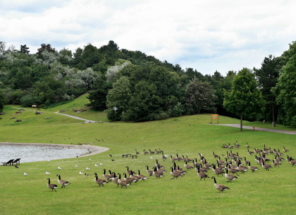 El Parc de la Courneuve logró instalar, desde 1961 hasta 1970, el cuarto «pulmón» de la región de París con el Bois de Boulogne, el Bois de Vincennes y el Parc de Sceaux24. El enorme césped, diseñado por A. Audias para el paseo marítimo y las comidas campestres populares, fue completado por el parque de G. Samel y A. Provost, mientras que las ciudades dormitorio se multiplicaron y fueron las más emblemáticas de «entre ellos, la ciudad de 4.000.» Compuesto por cuencas, valles, miradores, lagos, arroyos y cascadas, los paisajistas han producido, durante veinte años, el parque más importante de la región de París desde el Segundo Imperio; un lugar que reúne paisajes de cuentos chinos, sueños de viajes imposibles «25. Desde 1993, exhibiciones temporales de obras de arte – Art Grandeur Nature – tuvieron lugar regularmente en forma de giras y contribuyeron al éxito popular de Parque. El enorme teatro verde se convierte en una miríada de paisajes inesperados que lo convierten en un paraíso poético inagotable.