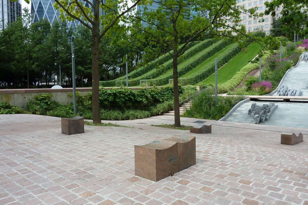 Como ocurre con frecuencia en los Docklands de Londres, la falta de una buena planificación del paisaje al comienzo del proyecto de regeneración creó condiciones casi imposibles para un buen diseño del paisaje, en el sentido de crear un espacio al aire libre que satisfaga los objetivos de diseño de Vitruvio (Mercancía, firmeza y deleite) que también subyacen a los objetivos de diseño de la arquitectura del paisaje.