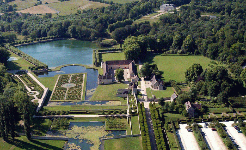 El parque consta de un jardín francés y un jardín inglés, un vertugadin , El Vertugadin (siglo XVIII): toma su nombre y su forma de los apretados pliegues de las faldas de las mujeres del siglo XVIII. El Vertugadin está rodeado por 14 estatuas de Italia. ( conjunto de céspedes dispuestos en anfiteatro o terrazas ) , un gran estanque, un macizo de flores del siglo XVI. , un jardín de bordados, una terraza medieval, un jardín de plantas medicinales. Entre los árboles de alineación podemos citar: encantos, tilos, frutales (manzana, pera, etc.). El parque está etiquetado como Jardín notable