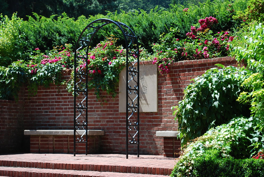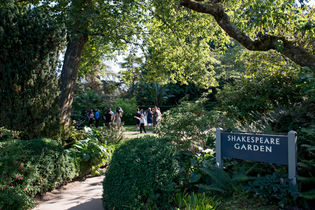 Incluía en su origen especies botánicas mencionadas en las obras de William Shakespeare. Se modificó posteriormente para limitar las especies de pleno sol habida cuenta de la sombra importante de los árboles circundantes. Hay una pasarela rectilínea, asientos y plantaciones impecables. Las variedades de rosales llevan el nombre de personajes de sus obras. Este jardín se frecuenta en ocasiones especiales, en particular, en las sesiones fotográficas de bodas
