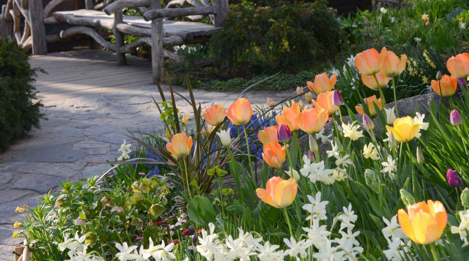 Ahora es un destino de primavera , alberga cientos de flores, arbustos y árboles que atraen mariposas, colibríes, abejas y otros animales salvajes. El jardín se ha convertido en un destino de principios de la primavera debido a su colección cada vez mayor de «tulipanes menores». Aunque estas plantas son en su mayoría en miniatura, se plantan en grandes cantidades para proporcionar notas de color. En la primavera, puede esperar encontrar narcisos, tulipanes, fritillarias y anémonas, según el jardinero de Larry Boes. (Además de las otras plantas que encontrará durante todo el año en el Jardín, incluidos lirios, rosas, azafranes, Susans de ojos negros, hellebores y muchos otros). «Hay algo que florece en Shakespeare Garden todos los días del año». «, Dice Larry. «Incluso si está bajo la nieve, los hellebores o snowdrops podrían estar floreciendo”