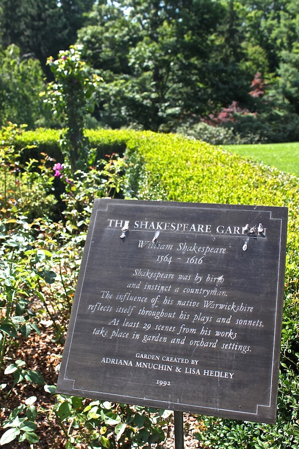 Una donación especial de Henry C. Folger, fundador de la biblioteca Folger Shakespeare Library en Washington, D.C., permitió la construcción del Shakespeare Garden original en 1925. Desde que se trasladó a un lugar diferente en el botánico, este jardín de campo inglés nos muestra a más de 80 plantas de las que William Shakespeare habla en sus poemas y obras. Las etiquetas de las plantas tienen el nombre que Shakespeare les asignó, su nombre binomial, anotaciones, y en algunos casos una representación gráfica de la planta.
