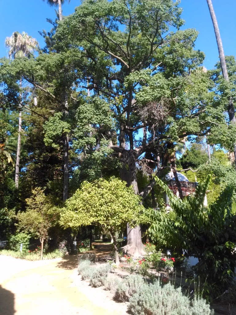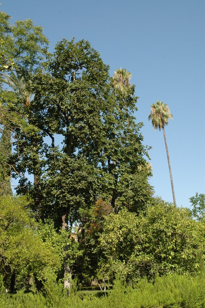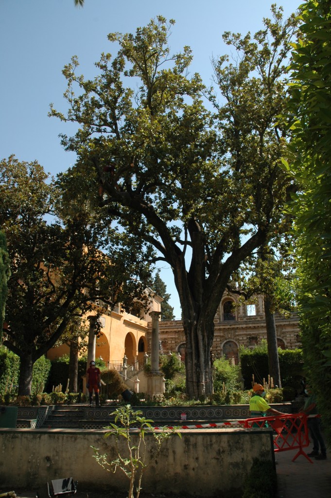 Me refiero a la denominación de árbol Campeón definiendo aquel que por sus medidas de diámetro de tronco, altura, y extensión de la copa se identifica como el más grande de su especie en un país,región,provincia o municipio y que yo lo voy a reducir a los jardines de los Reales Alcázares en mi paseo de hoy.