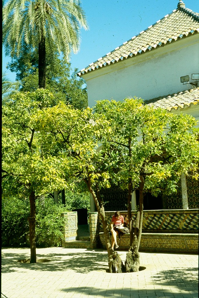 Citrus aurantium, el naranjo amargo, es un árbol cítrico de la familia de las Rutáceas. Es un híbrido entre Citrus maxima y Citrus reticulata.Es un árbol perennifolio que alcanza una altura de 7-8 m, espinas axilares y agudas.Importantes floraciones perfumadas en primavera,Está muy representado en todo el jardín tanto como árbol singular como formando espalderas.El más significativo el que según la leyenda plantó Don Pedro el Cruel y que se encuentra junto al Pabellón de Carlos V .