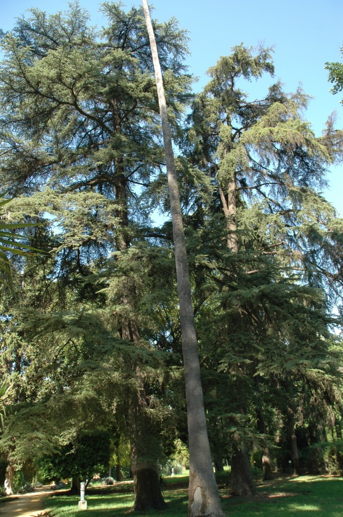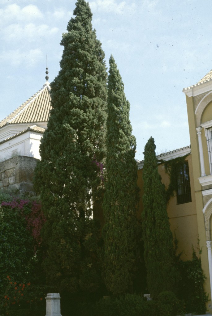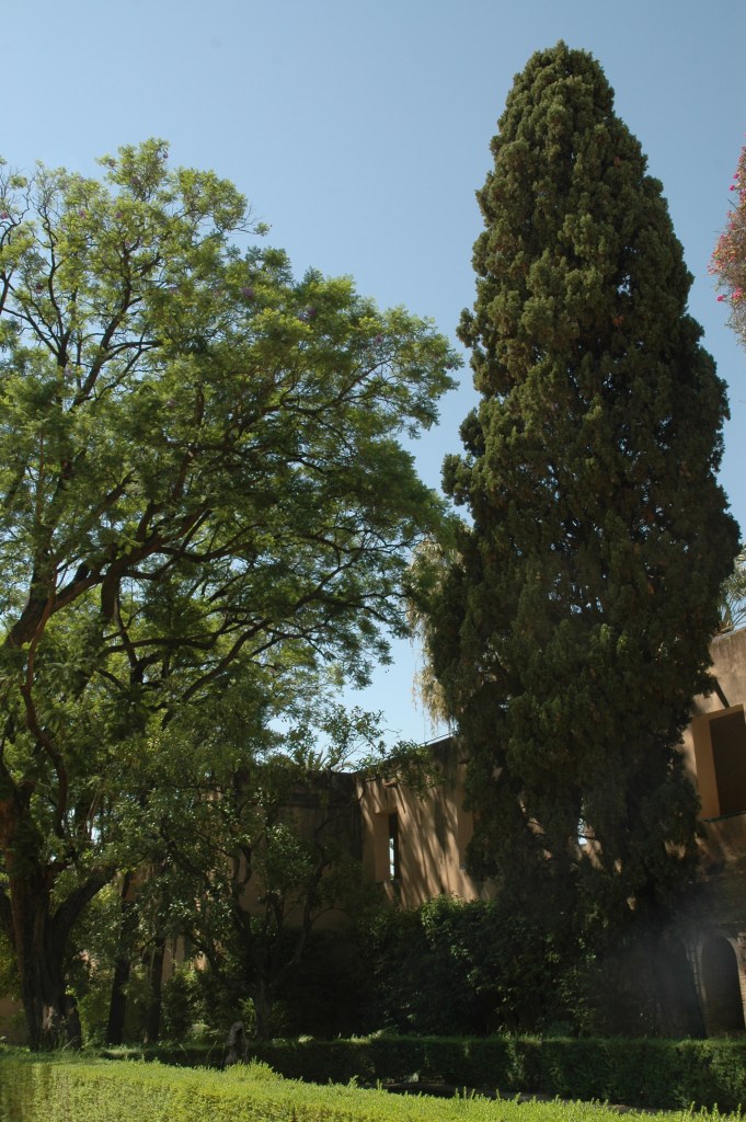 Cupressus sempervirens, el ciprés común o ciprés mediterráneo, es una especie arbórea de hoja perenne de la familia de las Cupresáceas.Es original de regiones del este del Mediterráneo puede alcanzar alturas de 25 o 30 m y vivir muchos años.Está muy representado en todo el jardín especialmente en la cafetería y en el jardín de los Poetas.