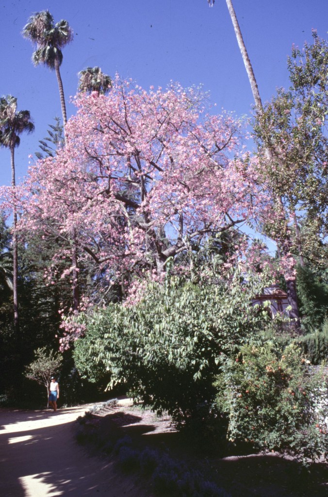Ceiba speciosa, popularmente llamada palo borracho, es una especie del género Ceiba nativa de las selvas tropical y subtropical de Sudamérica.Es arbol de hoja caduca,crece de entre 10 a 20 m de altura, aunque no es excepcional que alcance más de 25 m como los del jardín Inglés buscando la luz.Florece abundantemente con flores rosadas en los meses de octubre noviembre.El más antiguo se encuentra junto al Cenador del León.