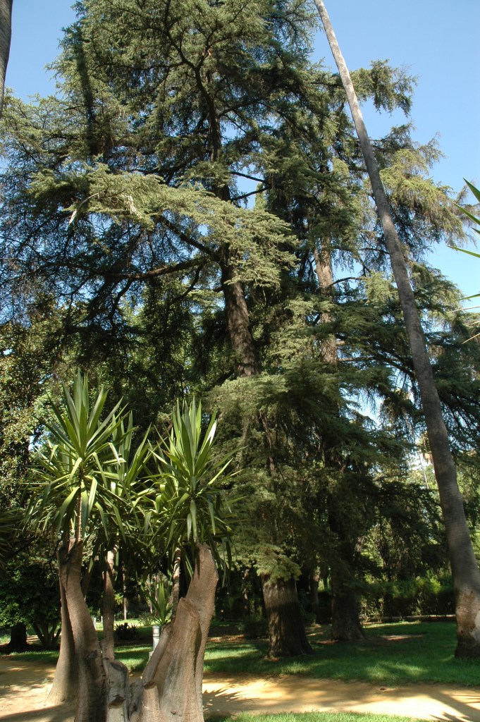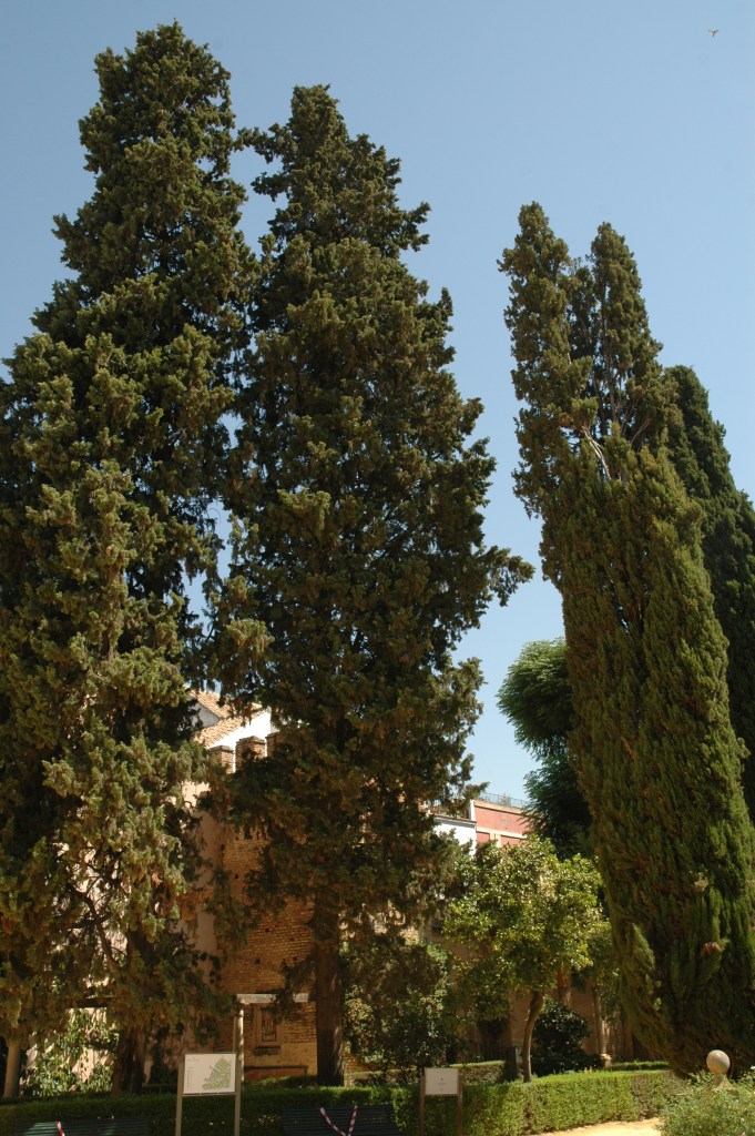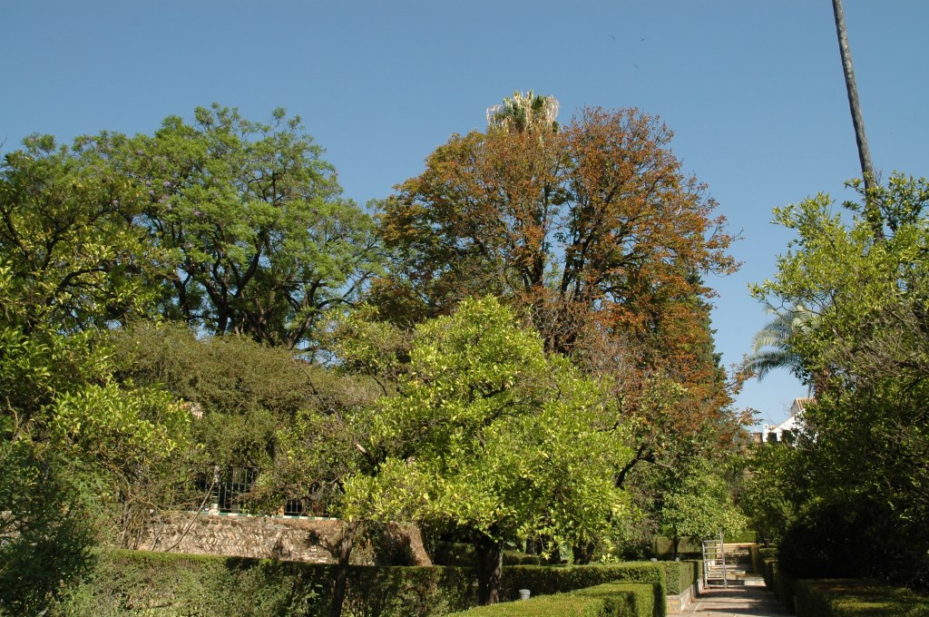 No son los más grandes del pàis pero si de los jardines son árboles singulares que nos brindan la oportunidad de familiarizarnos con ellos y aprender sobre la variedad de formas y tamaños que adquieren en nuestro clima en las distintas condiciones ambientales que le ofrecen los jardines de los Reales Alcázares.y nos muestran el potencial de cada especie de árbol y como, cuando se dan las condiciones adecuadas, pueden llegar a crecer y desarrollar dimensiones magníficas de altura, diámetro y corona que nos maravillan”