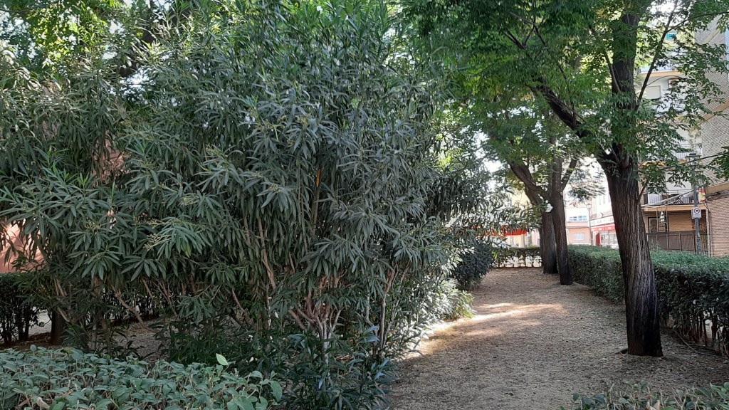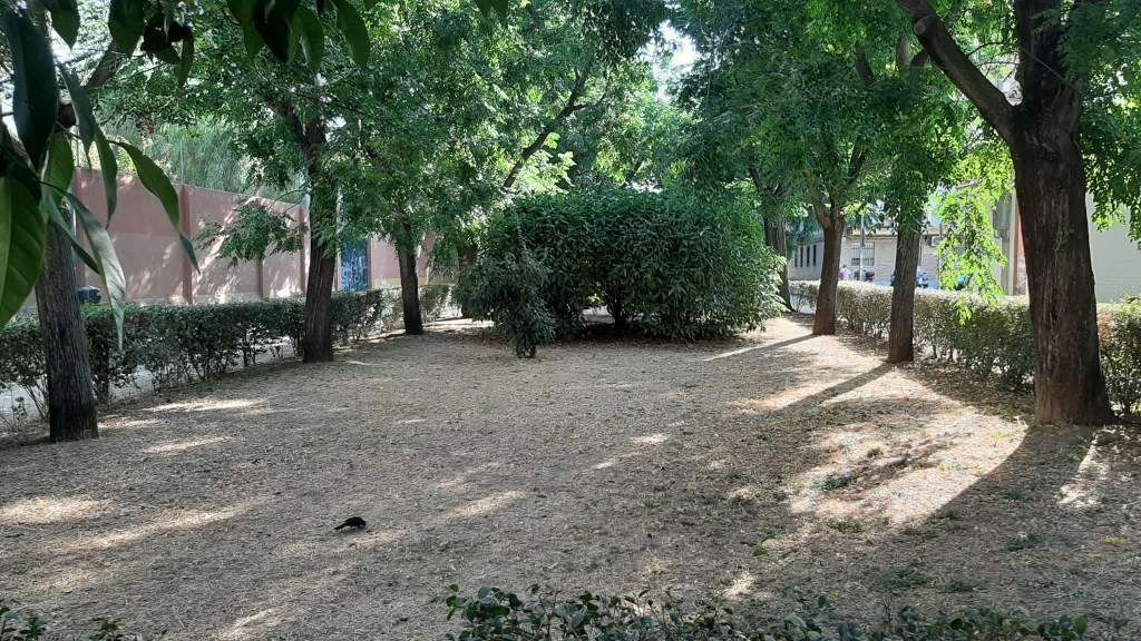 Lo cierto es que a través de los años se han consolidado las plantaciones de árboles.-Melia azedarach.-Paraíso y los Citrus aurantium.-Naranjo amargo desapareciendo muchos de los arbustos plantados en el interior de los cuadros ajardinados algunos por abandono y otros por la excesiva sombra que proporcionan los árboles.