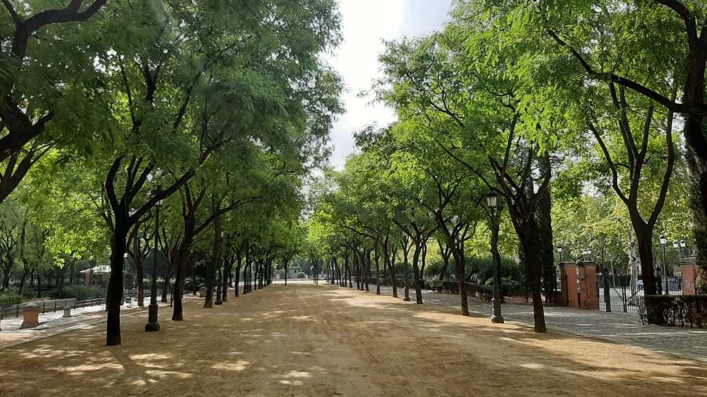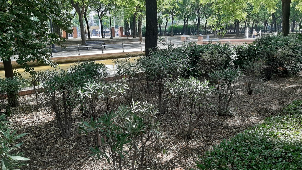 El jardín estaba concebido en su diseño con un cerramiento perimetral que lo aislaba del tráfico y el ruido exterior,y así se plantó,pero las podas se empeñan en conectarlo con el ruido,la polución y el tráfico.