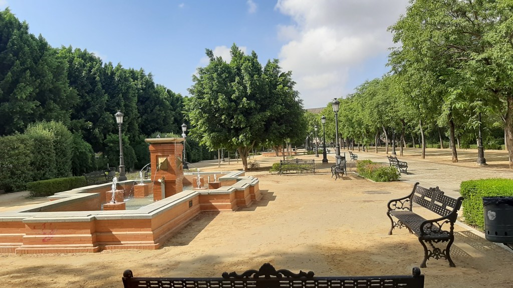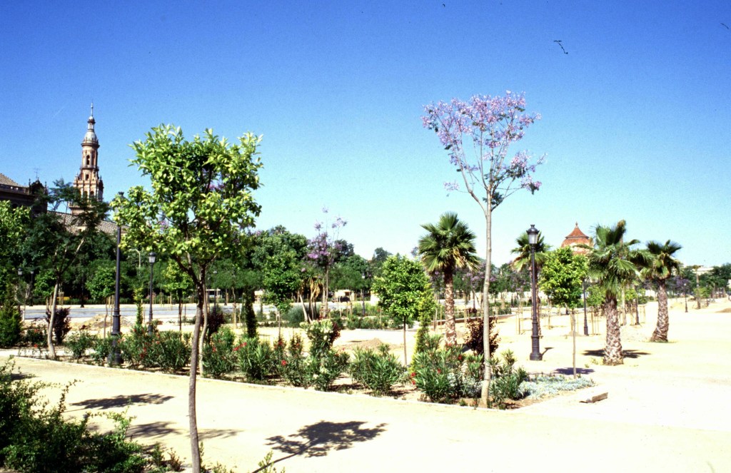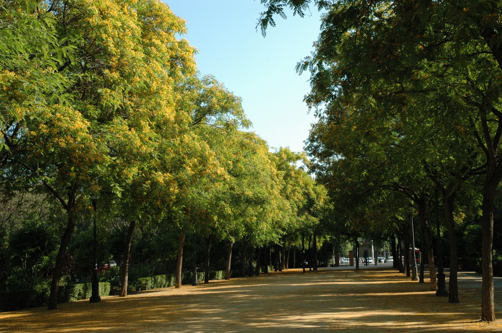 .En los paseos longitudinales laterales, la protagonista del jardín es la tipuana o palo rosa (Tipuana tipu) que adornan toda la longitud del mismo con sus flores de llamativo color amarillo y dando la sombra más apreciada en los calurosos días de verano..