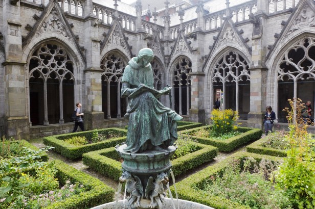 El jardín del claustro era esencialmente una habitación sin techo. Estaba ubicado dentro de un complejo religioso rodeado de muros o edificios. Los laicos fueron excluidos del jardín del claustro; Era un lugar apartado para la contemplación del clero. El jardín del claustro estaba rodeado por una columnata para acceso cubierto a espacios adyacentes y para proteger a sus ocupantes del sol y la lluvia. En el centro del jardín había una fuente o pozo para riego y agua para beber..El jardín del claustro estaba plantado de pastos y arbustos, y a veces flores, vegetales y hierbas aromáticas,culinarias y medicinales.