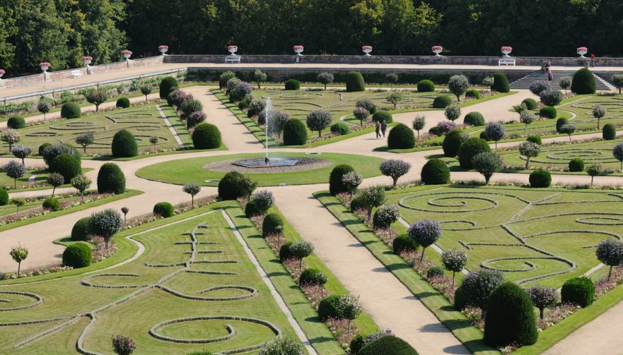 Un ejemplo de un jardín renacentista es el jardín de Diane de Poitiers en el castillo de Chenonceau del siglo XVI, cerca del pueblo francés de Chenonceaux. Es geométrico en su forma y diseño general y está adyacente a un castillo. El jardín barroco se produjo entre 1600 y 1750. El barroco es la designación de un estilo de arte y arquitectura que se desarrolló en el período comprendido entre el Renacimiento y la Edad Moderna, de aproximadamente 1600 a 1750. El estilo barroco comenzó en Roma en el diseño de iglesias católicas, esculturas y pinturas en apoyo de la Contrarreforma, que fue la respuesta eclesiástica a la Reforma protestante. El arte barroco fue creado y utilizado para propagar la pompa, la autoridad y la ortodoxia de la Iglesia Católica; El arte y el diseño barrocos también se utilizaron en apoyo del estado, para representar el poder y la autoridad de la monarquía. El ejemplo más influyente Roman de la rose es un poema francés sobre el arte del amor romántico escrito entre 1230 y 1275. Tiene lugar en un jardín de placer que está separado del mundo exterior, un lugar para el amor.del jardín barroco francés son los jardines de Versalles .