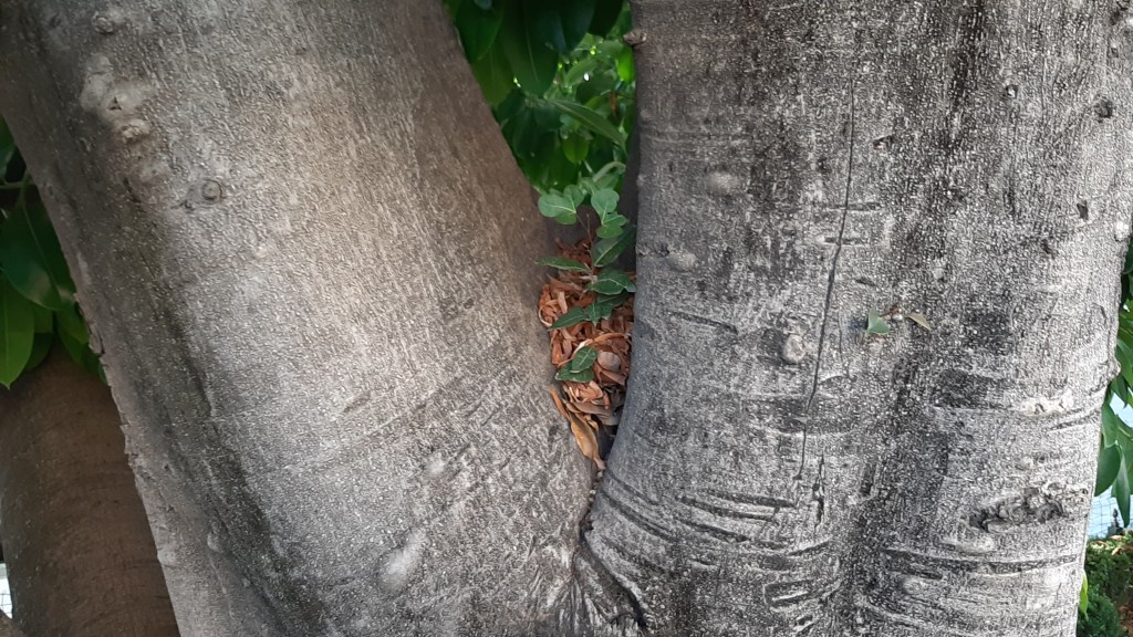 En una somera Evaluación Visual del Árbol ( EVA ) de las estructuras visibles,al pasear por Triana he notado que el árbol ha abierto su copa con su crecimiento, observándose un exceso de peso a las ramas que la sostienen.Por las características de su tronco un desgaje si sigue aumentado el peso de la copa con su desarrollo,es inminente en la presencia de cualquier racha de viento.