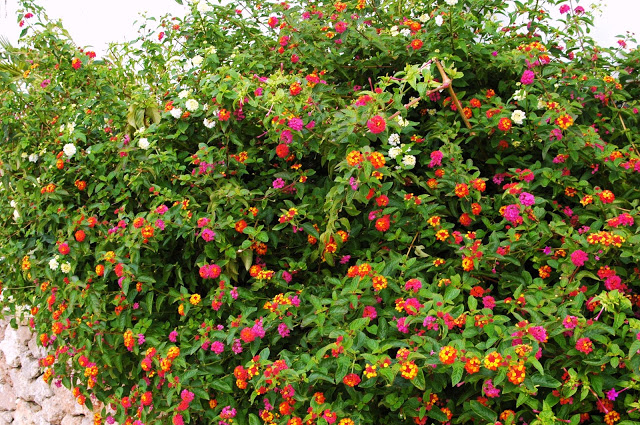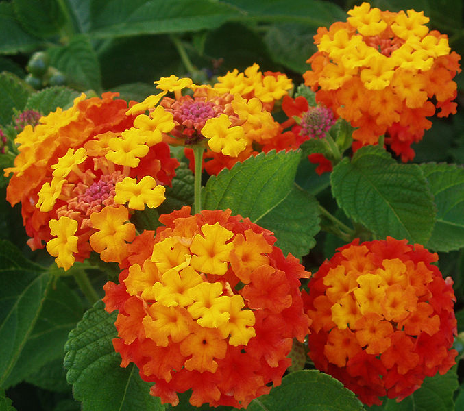En nuestro clima de inviernos templados las lantanas pueden florecer casi todo el año.. La gama de colores que pueden tomar las lantanas es casi ilimitada. Las flores rojas, naranjas, amarillas, blancas,azules y púrpuras son fáciles de conseguir. Uno de los rasgos más atractivos de las lantanas es que sus flores cambian de color a medida que avanza la temporada, por lo que una flor amarilla puede eventualmente transformarse en una flor anaranjada o rojiza, a veces con más de un tono en un solo pétalo. Las alegres coloraciones que ofrecen las lantanas son la razón principal por la que son tan populares entre los jardineros
