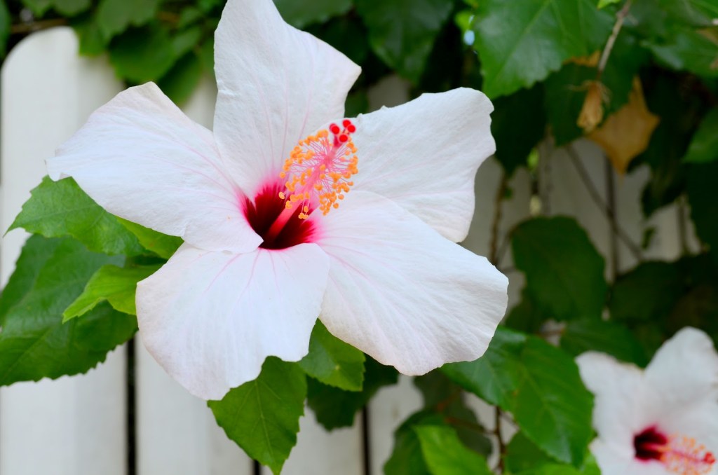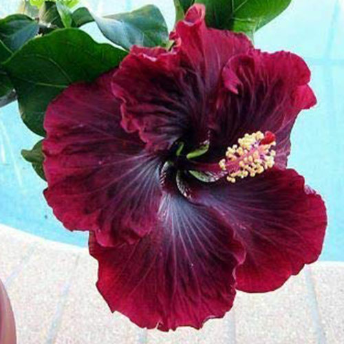 Sin embargo, dependiendo del trasfondo genético de una especie, híbrido o cultivar determinado, las flores pueden ser mucho más pequeñas y pueden variar en color desde el rojo brillante hasta el blanco, azul o violeta ruborizado rosado, a menudo con gargantas rojas o burdeos, y varios colores de rayas en los bordes de las flores. Como todos los hibiscos, las resistentes flores de hibisco también tienen esa prominente columna estaminal cubierta de polen, lo que les da una dimensión adicional de interés..