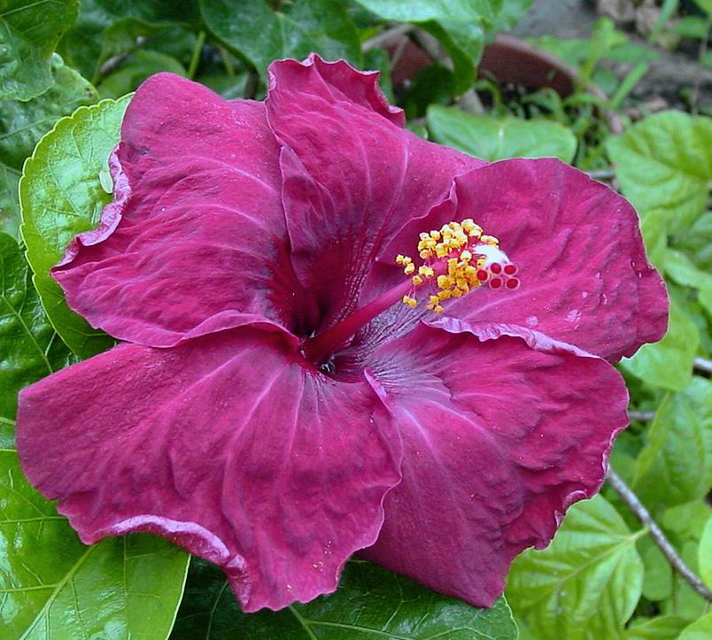 Hibiscus rosa-sinensis, llamado comúnmente pacífico,rosa de China o, hibiscus, entre otros nombres, es un arbusto persistente de la familia de las malváceas, originario de Asia oriental