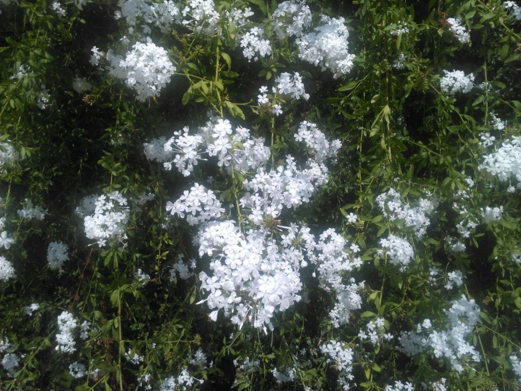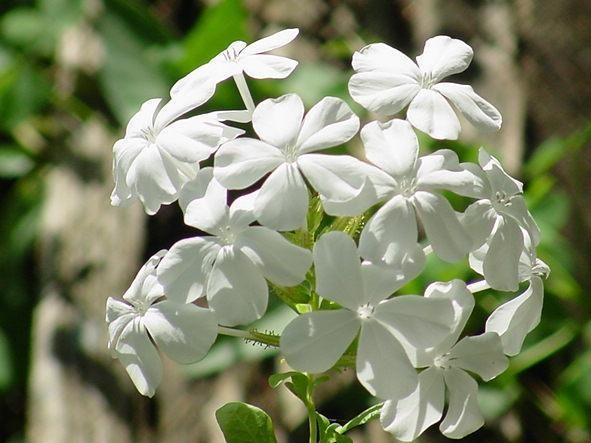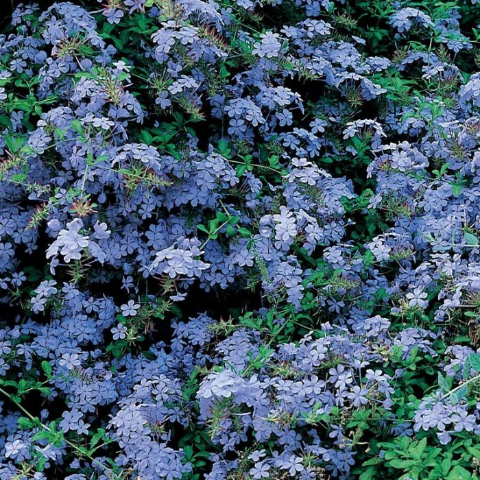 Plumbago auriculata crece rápido con flores celestes a azules, y variegadas Alba con flores  blancas, y el “ Royal cape  “ con un  azul más  oscuro.