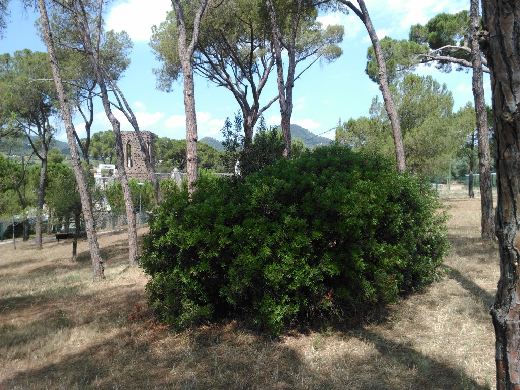 La planta es siempre verde, de 1 a 5 m de altura, con un fuerte olor a resina, que crece en zonas secas y rocosas de la Europa mediterránea. Resiste fuertes heladas y crece en todo tipo de suelos, pudiendo crecer bien en zonas calizas e incluso en ambientes salados o salinos, por lo que es más abundante cerca del mar.