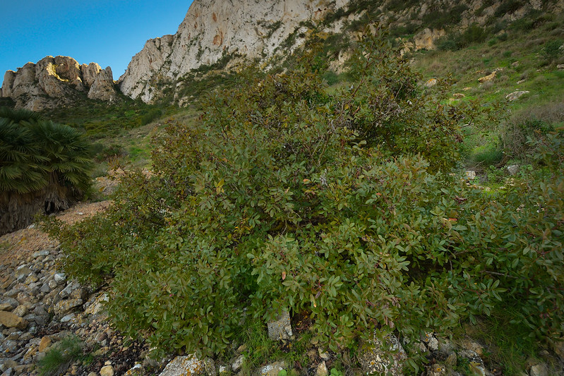 Pistacia lentiscus con nombre común de lentisco, es originaria de toda la región mediterránea, desde Marruecos y la península Ibérica en el oeste hasta el sur de Francia y Turquía hasta Irak e Irán en el este. También es originaria de las Islas Canarias.
