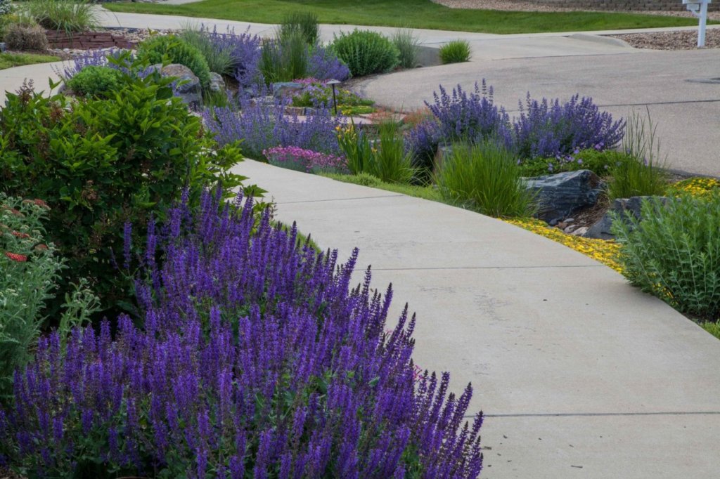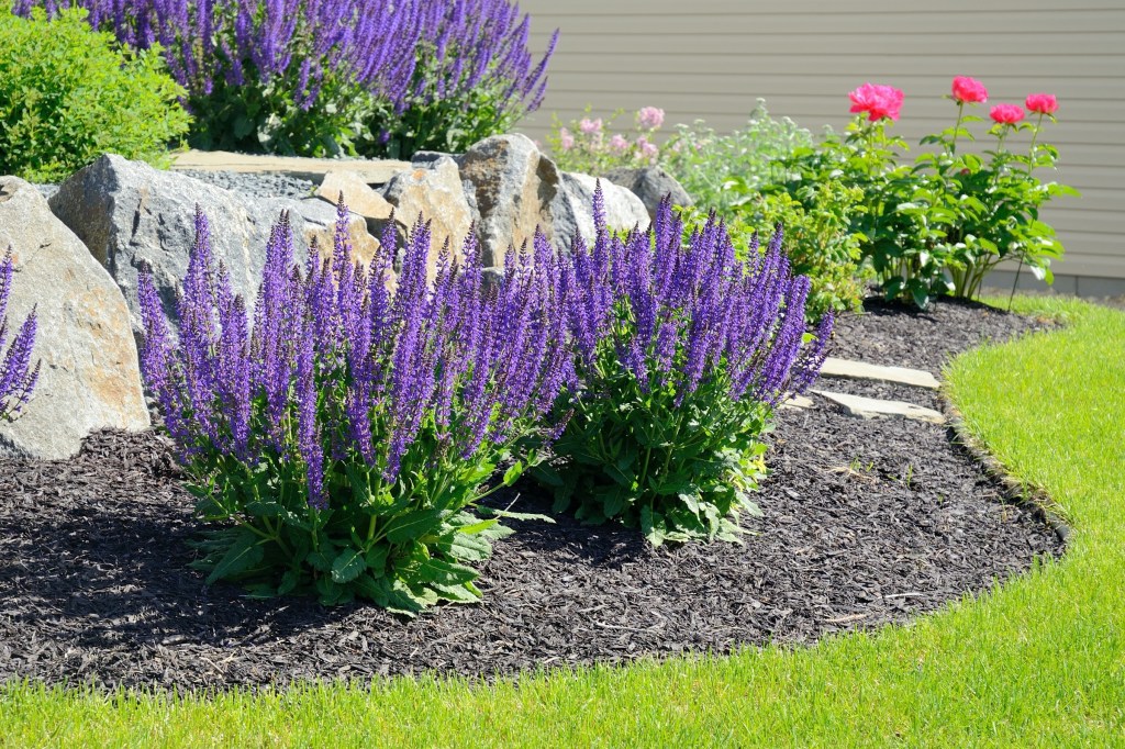 Junto con el acolchado, también es posible el uso de cubiertas para el suelo para retener la humedad, limitar las hierbas y agregar color al espacio.