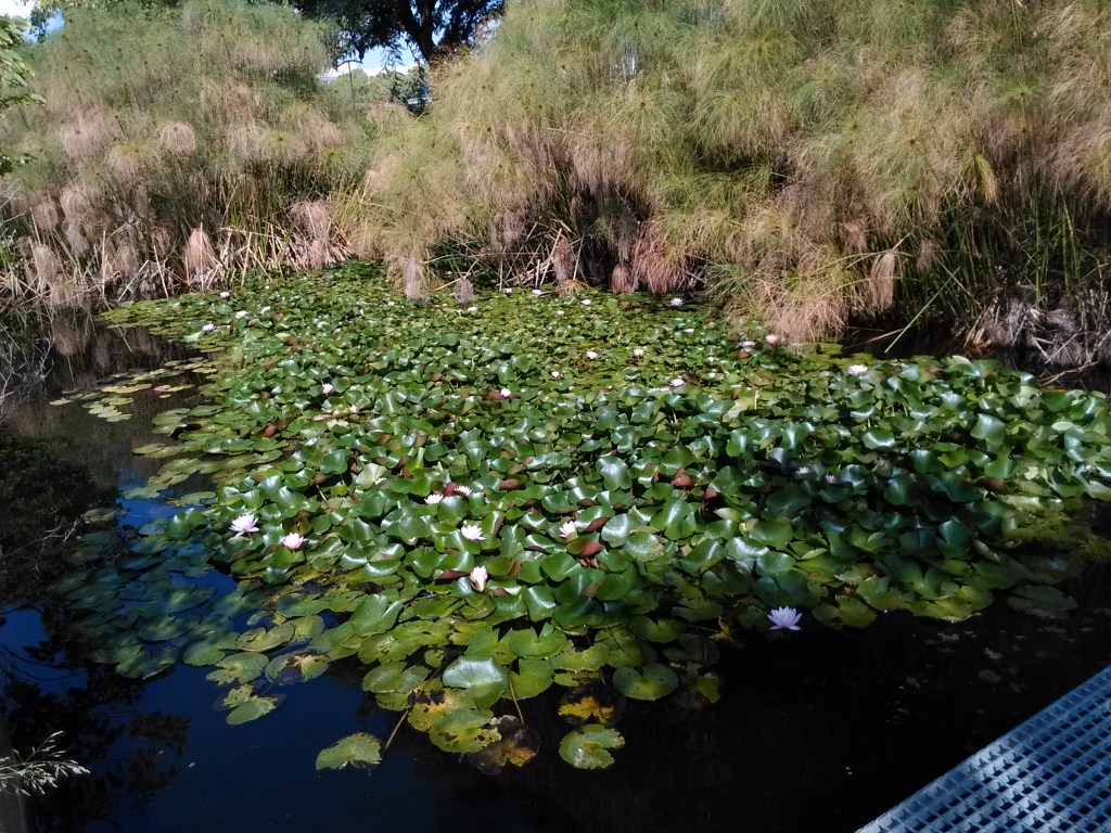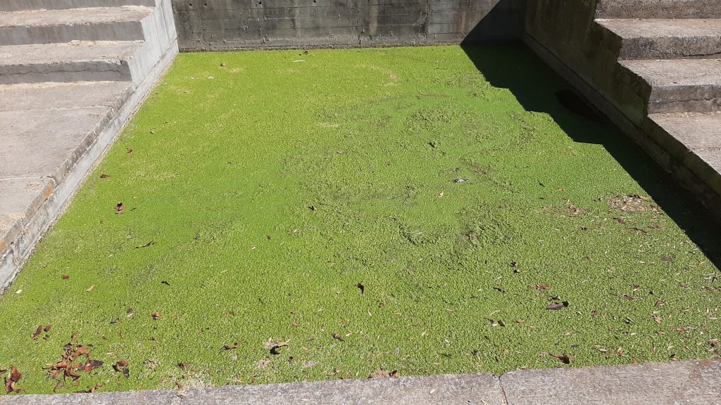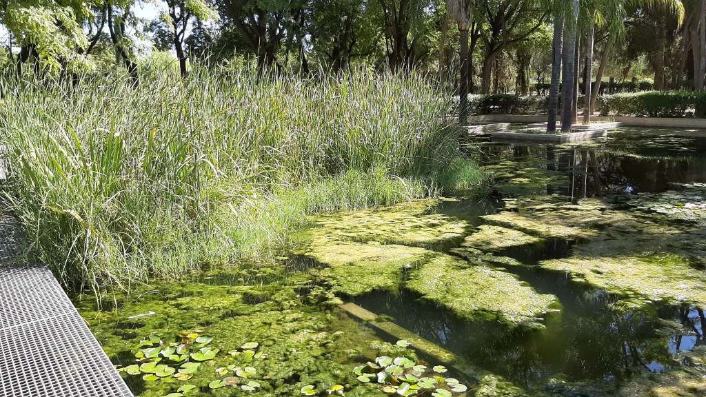 El Jardín del Agua ha sido limpiado hace ya un tiempo y con la limpieza han desaparecido muchas nymphaeas,lotos que flotaban en sus aguas ofreciendo llamativas floraciones acompañadas por pequeñas tortugas que vivían en el estanque han desaparecido ( Ver fotos ).Ahora nos ofrece en sus aguas estancadas una invasión de algas y un lugar apropiado para la proliferación de mosquitos.