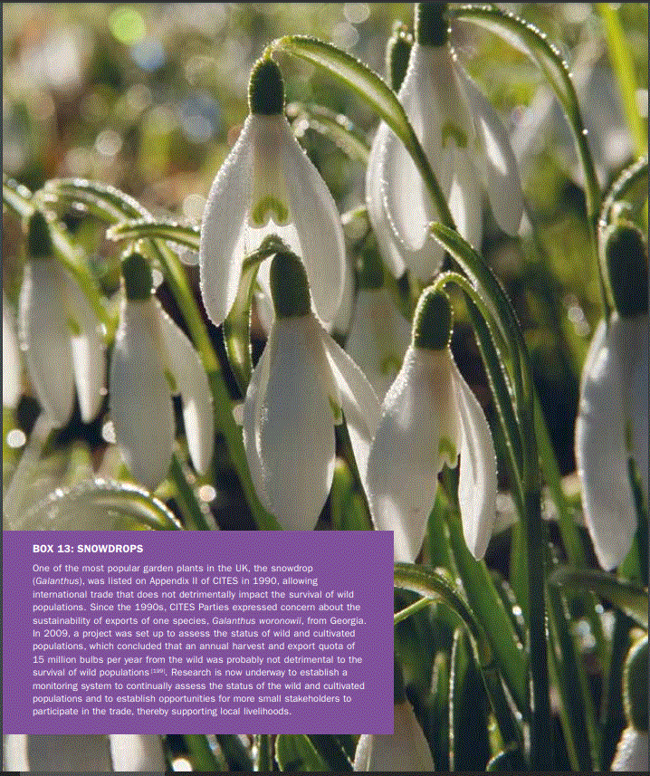 Kew ha sido la Autoridad Científica CITES para la flora del Reino Unido desde que el Reino Unido firmó la Convención en 1976. Asesora al gobierno del Reino Unido sobre asuntos científicos relacionados con la CITES, incluido si el comercio de una especie es sostenible (véanse ejemplos recientes en los Recuadros 12 y 13 ). Uno de los principales grupos de plantas que se comercializan ampliamente, y el grupo que domina los apéndices de la CITES, son las orquídeas (alrededor de 30.000 especies: ver Givnish et al. [198] y http://www.emonocot.org). El principal objetivo del comercio notificado de orquídeas es comercial, con una pequeña cantidad de comercio de especímenes con fines científicos (véase [196]). Sin embargo, hay cada vez más pruebas de que muchas especies se comercializan a través de las fronteras internacionales sin los permisos CITES [200]. El comercio de harinas de orquideas, elaboradas a partir de tubérculos de orquídeas molidos, ha estado restringido a partes de África y Asia durante muchos años [201, 202]. Este comercio ahora se ha expandido para llegar a los mercados globales (Gardiner & Smyth, obs. Pers.). En Zambia y los países vecinos, el manjar tradicional chikanda, elaborado con tubérculos de orquídeas molidos y harina de maní, se ha consumido durante muchas décadas. La mayoría de las especies recolectadas para la producción de chikanda son miembros de los géneros Disa, Satyrium y Habenaria. En Zambia, el agotamiento de las orquídeas nativas ha llevado al abastecimiento de tubérculos de orquídeas de otros países, incluidos Tanzania, Angola, República Democrática del Congo y Malawi. Se ha estimado que cada año se exportan entre dos y cuatro millones de tubérculos de orquídeas de Tanzania a Zambia [201]. Turquía es el principal recolector y productor de harina de salep, pero más recientemente, se ha informado de la recolección de tubérculos de Irán, Pakistán e India como resultado del aumento de la demanda. Se estimó que en 2013 se cosecharon en Irán entre 7 y 11 millones de orquídeas, que representan 19 especies y subespecies de siete géneros, para la producción de salep [202]. El creciente interés por las harinas artesanales y sin trigo ha provocado la importación de salep en muchas partes del Reino Unido y la Unión Europea. Todo este comercio es ilegal (Gardiner & Smyth, obs. Pers.). Muchas especies de orquídeas también se comercializan como ingredientes en los productos que compramos en los supermercados, tiendas de salud y farmacias. Un estudio reciente encontró 39 especies de orquídeas en el comercio europeo de una forma u otra [203]. Están surgiendo pruebas de que muchos suplementos nutricionales contienen especies de orquídeas que pueden no ser de origen legal [203]. Recientemente, la Fuerza Fronteriza del Reino Unido ha incautado cantidades significativas de una variedad de suplementos que contienen orquídeas (especialmente Dendrobium spp.). Los investigadores enfrentan un gran desafío al tratar de identificar especies individuales en productos compuestos como harinas, suplementos para la salud y cosméticos.