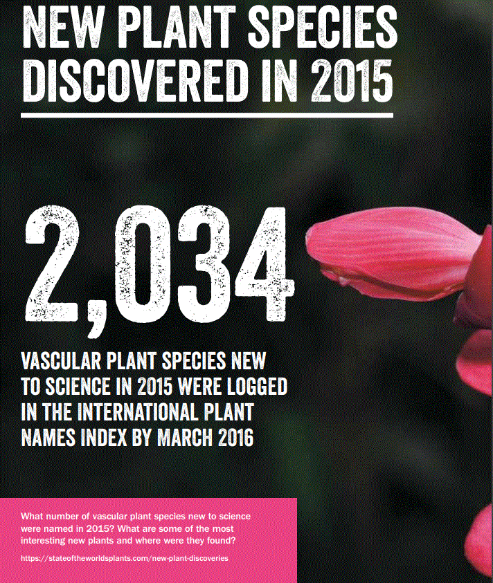 ¿Qué número de especies de plantas vasculares nuevas para la ciencia se nombraron en 2015? ¿Cuáles son algunas de las plantas nuevas más interesantes y dónde se encontraron? https://stateoftheworldsplants.com/new-plant-discoveries