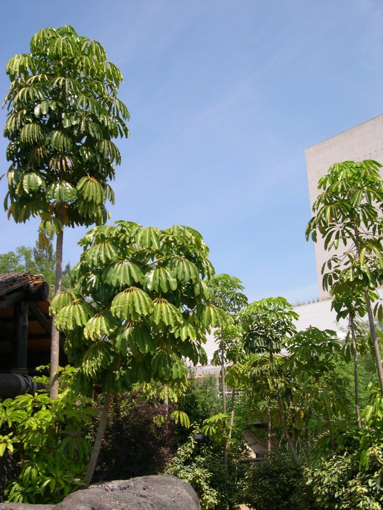 Forma y carácter: El árbol paraguas es un árbol tropical fuertemente erguido, limpio e imponente que va desde rancio y abierto como una planta de interior para interiores hasta grueso, audaz y lujoso como un árbol al aire libre.