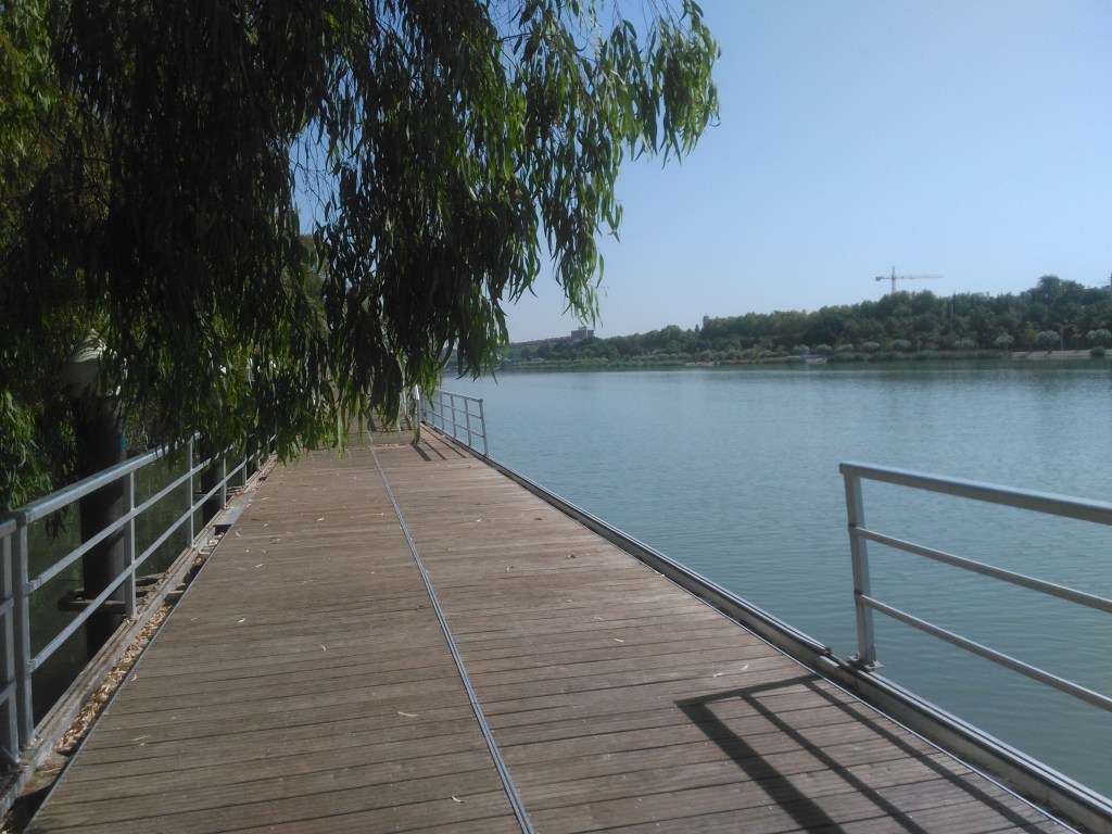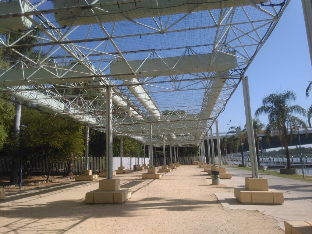 El carril bici y la ruta peatonal recorren toda la zona de la Isla de Cartuja que va desde el Pabellón de la Navegación hasta el Auditorio Municipal Rocío Jurado, pasando por el entorno del Jardín Americano y los Jardines del Guadalquivir. ( CARRIL BICI EN USO )