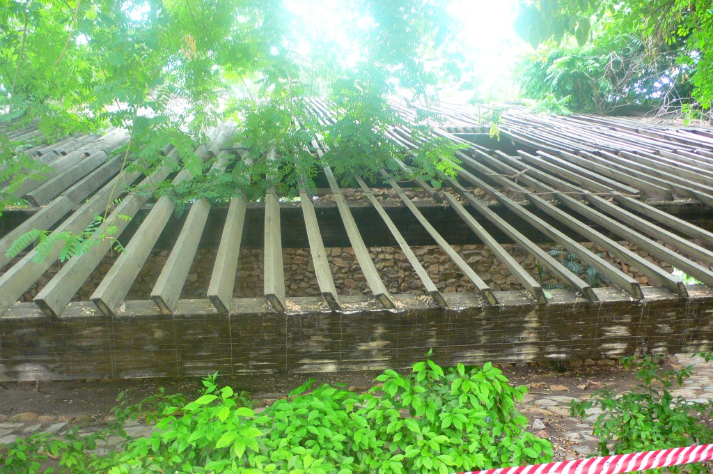 el Muro Ajardinado cubierto por especies trepadoras; el Jardín de la Pasarela y las Pérgolas con estructuras de soporte para plantas colgantes que aportan sombra.(LAS PERGOLAS CON PLANTAS SECAS Y ABANDONADAS )