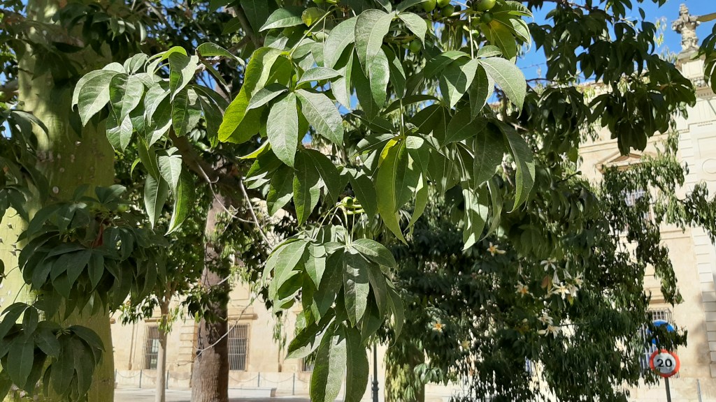 Es de notar asimismo, como se puede ver en las fotos que la formación de las hojas es completamente distinta una de la otra. Las dos están señalizadas como Ceiba insignis.
