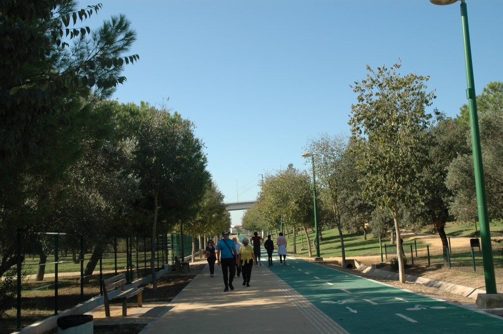 Desde EL Parque Guadaira II nos dirigimos a través de su nueva conexión con carril bici incluido al Parque de los Bermejales que ya habíamos visitado años atrás.
