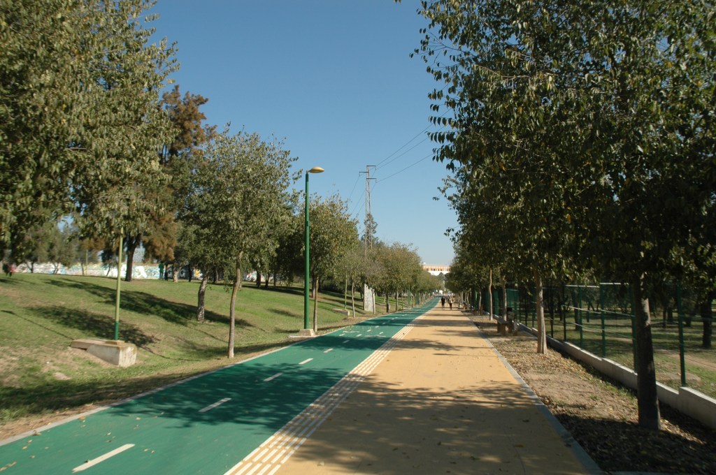 El Parque se ha visto beneficiado con la construcción de una vía peatonal así como un carril bici desde el parque sobre el antiguo cauce del río Guadaíra.-Guadaira II hasta el parque periurbano de los Bermejales, pasando por el SADUS.