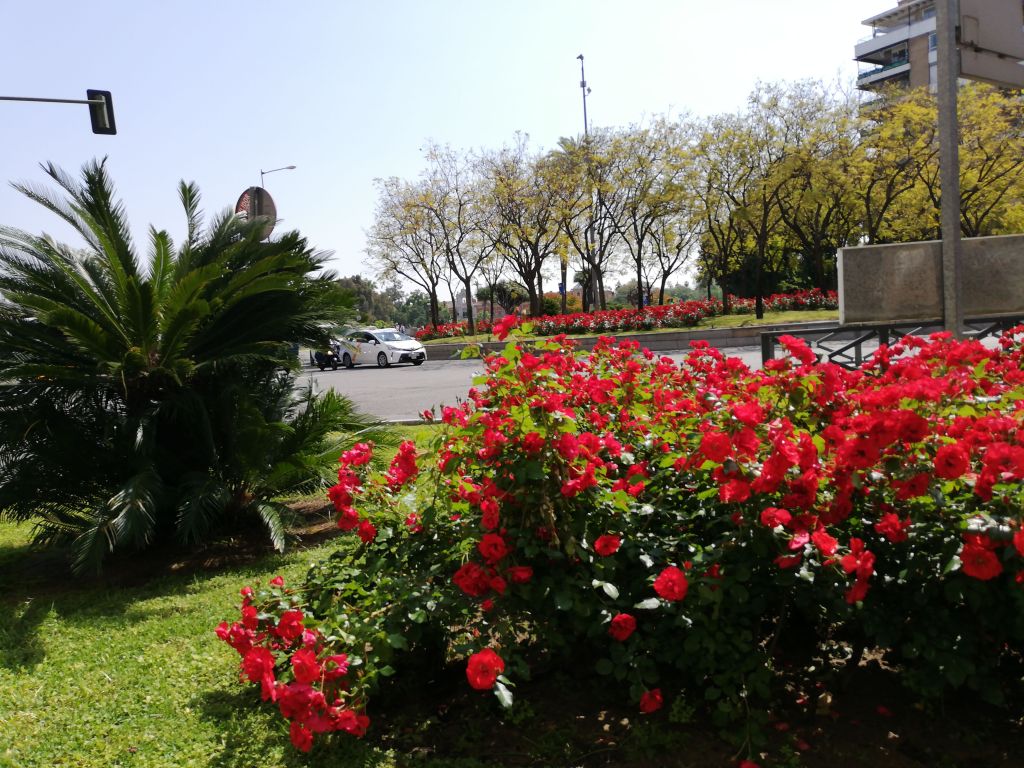 Lo arriates elevados formando semicírculo fueron asimismo plantados con setos de arrayan y de rosales. En esta reforma se arrancaron algunas encinas, que después no fueron repuestas y se incluyó la plantación de yucas.-Yucca gloriosa y dragos.-Dracaena drago, junto con Júpiter.-Lagerstroemia indica ,pitosporum.-Pittosporum tobira y nandinas.-Nandina domestica y palam de Sagú.-Cycas revoluta y de vez en cuando algunas plantas de flor alrededor del círculo de la fuente y en los arriates resultantes de la ordenación de la plaza, que se han mantenido hasta hoy.