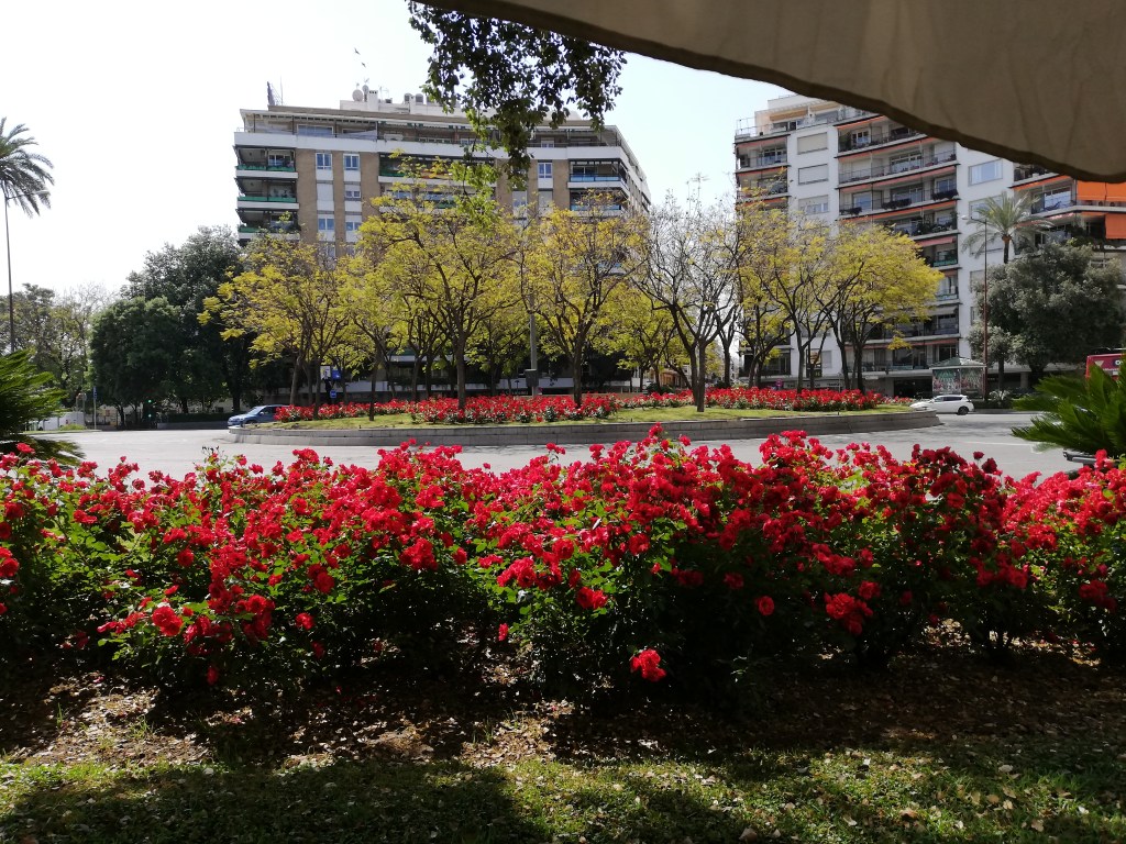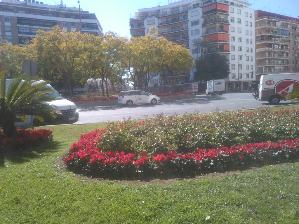 La plaza fue totalmente modificada por estas obras, en el nuevo diseño se construyo una nueva fuente dentro de un circulo elevado donde se plantó un bosquete de jacarandas.-Jacaranda mimosifolia con un sotobosque de liriopes.-,Liriope muscari que con el tiempo fueron desapareciendo hasta que fueron sustituidos por rosales La Sevillana que hasta hoy son los que ofrecen sus floraciones rojas en la plaza.