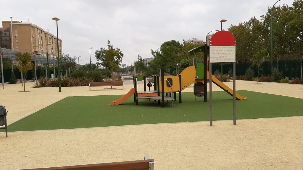 La zona verde está construida sobre lo que es el tanque de tormentas o aliviadero, una infraestructura de grandes dimensiones dentro del plan de alcantarillado de la ciudad, que permite recoger y retener el agua de la lluvia y las “ aguas negras “ para su procesamiento posterior en las plantas depuradoras.