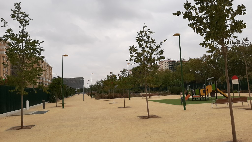 Con motivo de la construcción de un tanque de tormentas en la avenida de Kansas City y la calle 28 de Febrero, en el distrito San Pablo-Santa Justa, se ha creado una nueva zona verde promovida por el Ayuntamiento de Sevilla a través de EMASESA.
