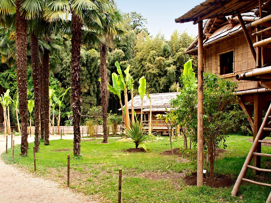 Villa laosiana .-Un pueblo asiático, construido íntegramente por un miembro del personal de origen laosiano y su equipo. Una reproducción fiel de la arquitectura y la decoración del hábitat tradicional de Laos. Podrá observar alrededor del pueblo, paisajes asiáticos y especies de plantas específicas de Laos: plátanos, taros (tubérculos exóticos), cañas de azúcar, etc.