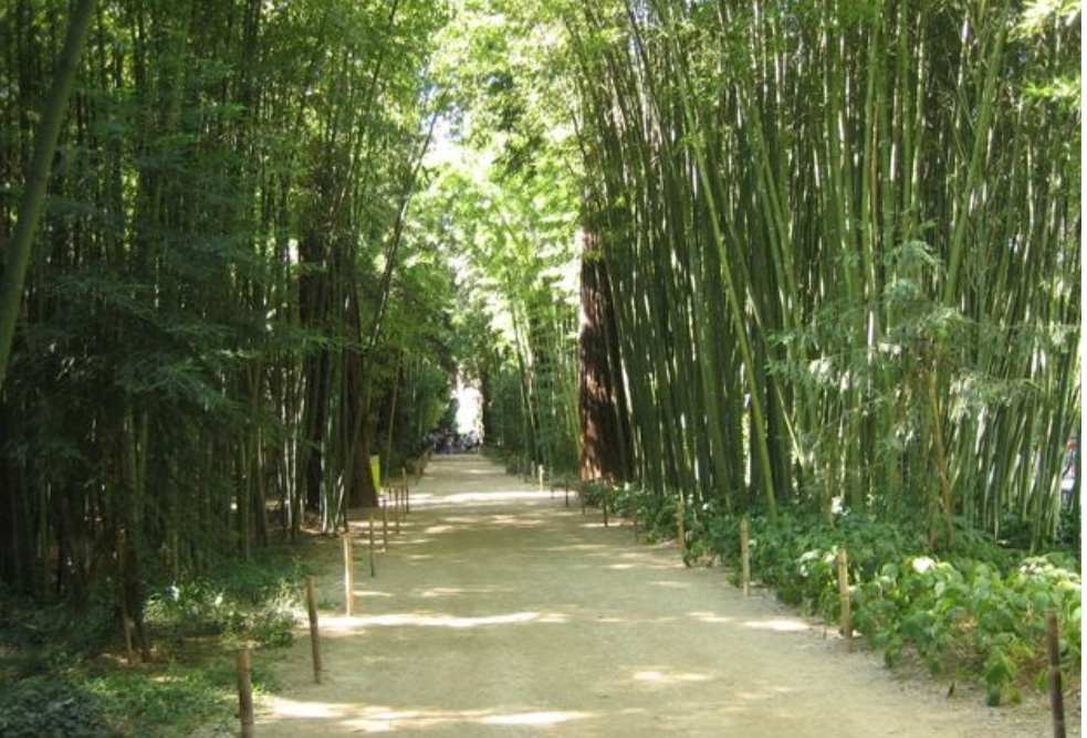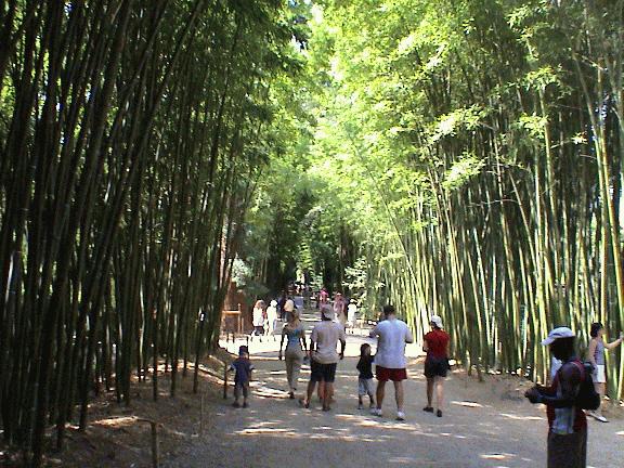 Bosque de bambúes.-Es gracias a su tamaño de entre 15 y 25 metros de altura que podemos hablar de bosque. Pero el bambú es una hierba, el bosque de bambú es en realidad un «prado» formado por hierbas muy altas. Deslumbrado ya por la altura y belleza de estos bambúes, este paseo también nos permitirá saborear un frescor natural y muy apreciado durante toda la temporada de verano.