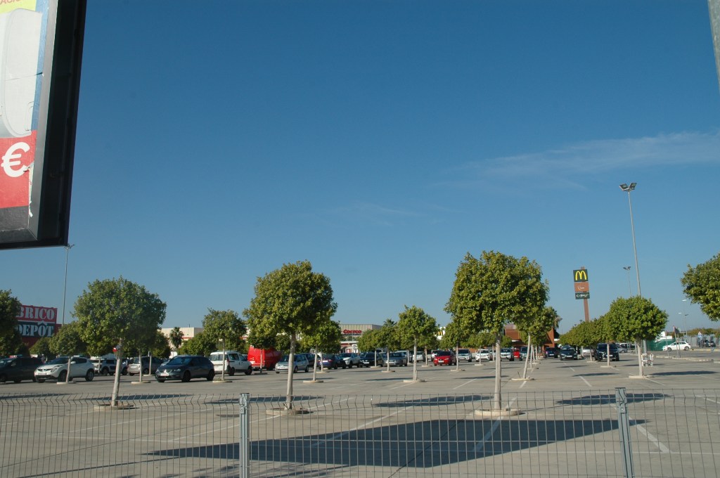 Nos llamó la atención la plantación de ficus en las áreas de aparcamientos, pensando en su futuro desarrollo.