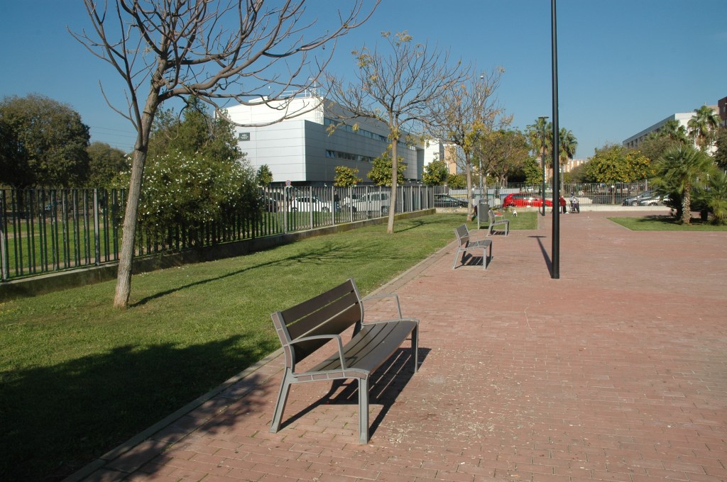 Los dos parques los definiremos como un solo parque porque el tratamiento de estos es idéntico. están debidamente cerrados con puertas de acceso en cada encuentro de calle . La que más se beneficia es la calle Factores donde se han instalado diferentes negocios de restauración con vistas al parque y en la que tomamos un aperitivo.