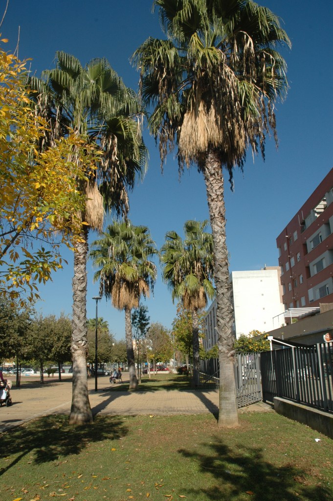 Las palmáceas están representadas por la Washingtonia robusta y los palmitos Chamaerops humilis y la cicadáceas por la Palma de Sagú.-Cycas revoluta distribuidas en los parterres.
