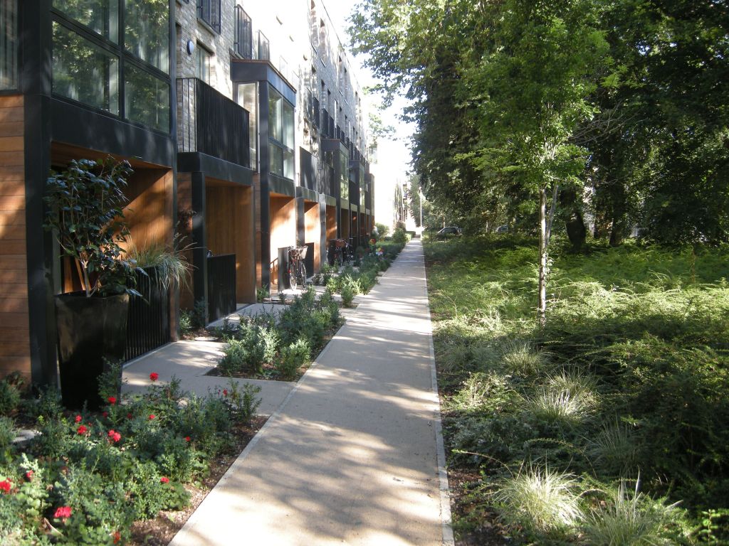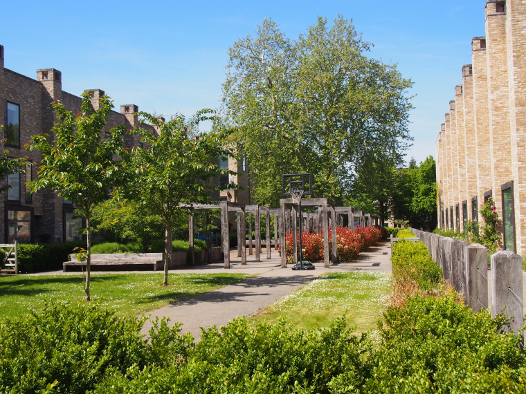 Aunque la vivienda está construida con densidades relativamente altas, la calidad de los espacios abiertos, las áreas de juego y el diseño de las calles, y la incorporación de tantos árboles maduros, ha creado un entorno de vida excepcional.