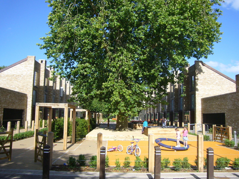 Se conservaron más de 700 árboles maduros como parte del desarrollo y se complementaron con plantaciones adicionales. El sitio, que anteriormente era oficinas gubernamentales y estructuras prefabricadas de la Segunda Guerra Mundial, ahora contiene viviendas diseñadas por tres estudios arquitectónicos diferentes, Feilden Clegg Bradley, Maccreanor Lavington y Alison Brooks Architects.