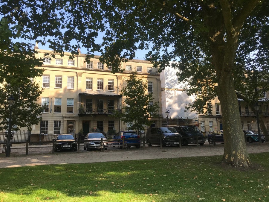 La Queen Square de Bristol era originalmente una hermosa plaza georgiana de casas adosadas que rodeaban un verde bordeado de árboles. Sin embargo, en la década de 1960 se construyó una carretera de doble calzada en diagonal a través de la plaza como parte de una nueva carretera de alivio del centro de la ciudad. En ese momento, muchas de las casas se habían dividido en ocupación múltiple y uso comercial, y esto, junto con el gran aumento en el tráfico y la pérdida del verde, resultó en la disminución de la plaza.