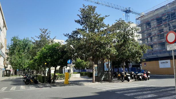 Desaparecen la totalidad de los setos de Punica granatum.-Granado enano que durante muchos años han luchado con las ventas ambulantes autorizadas en la plaza y los aparcamientos de bicicleta y motos  que el Ayuntamiento ha permitido.